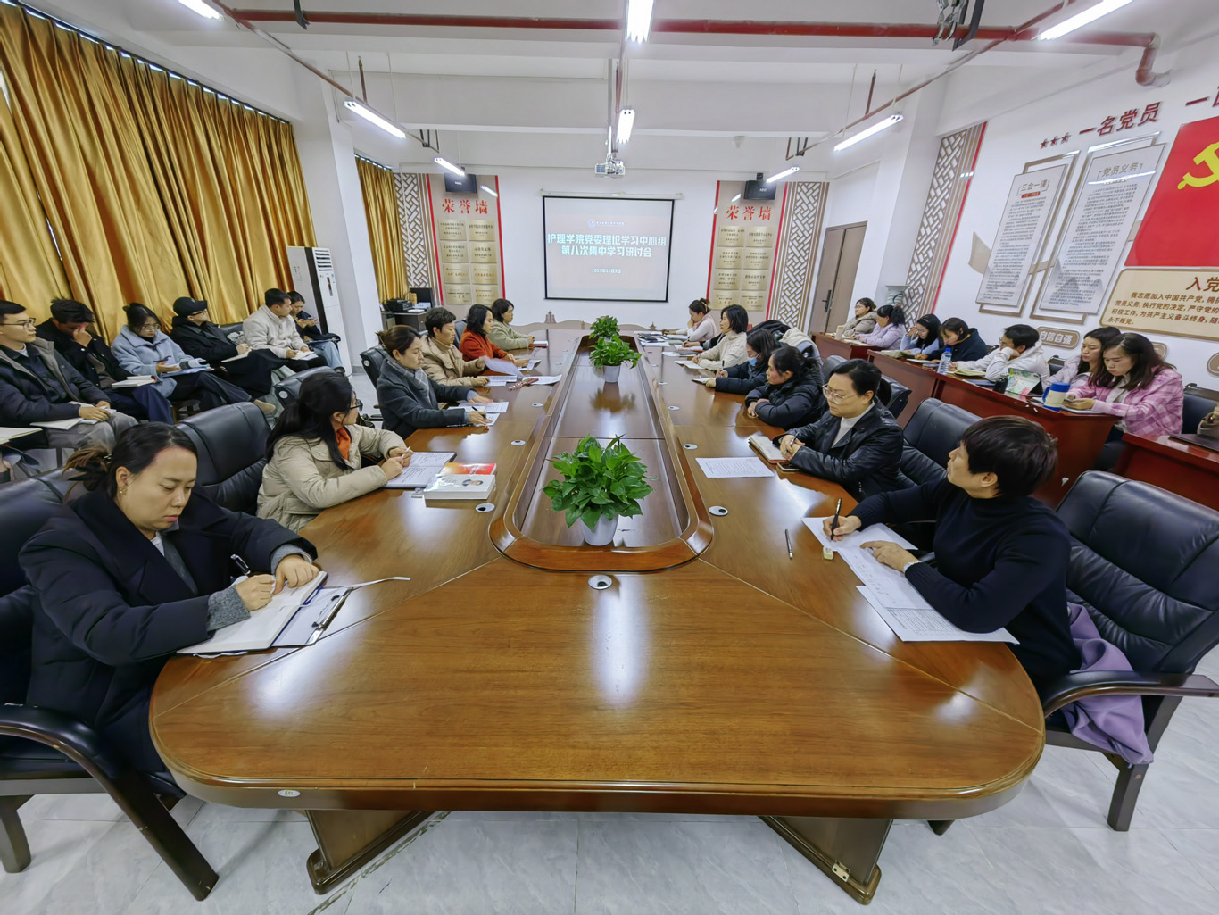 12月3日下午,太阳成在云漫湖校区酬勤楼六楼会议室召开了党委理论学习中心组第八次集中学习研讨会,学院党委领导班子成员、副科级以上干部、党支部书记和全体辅导员参会,会议由学院党委书记杨英主持。